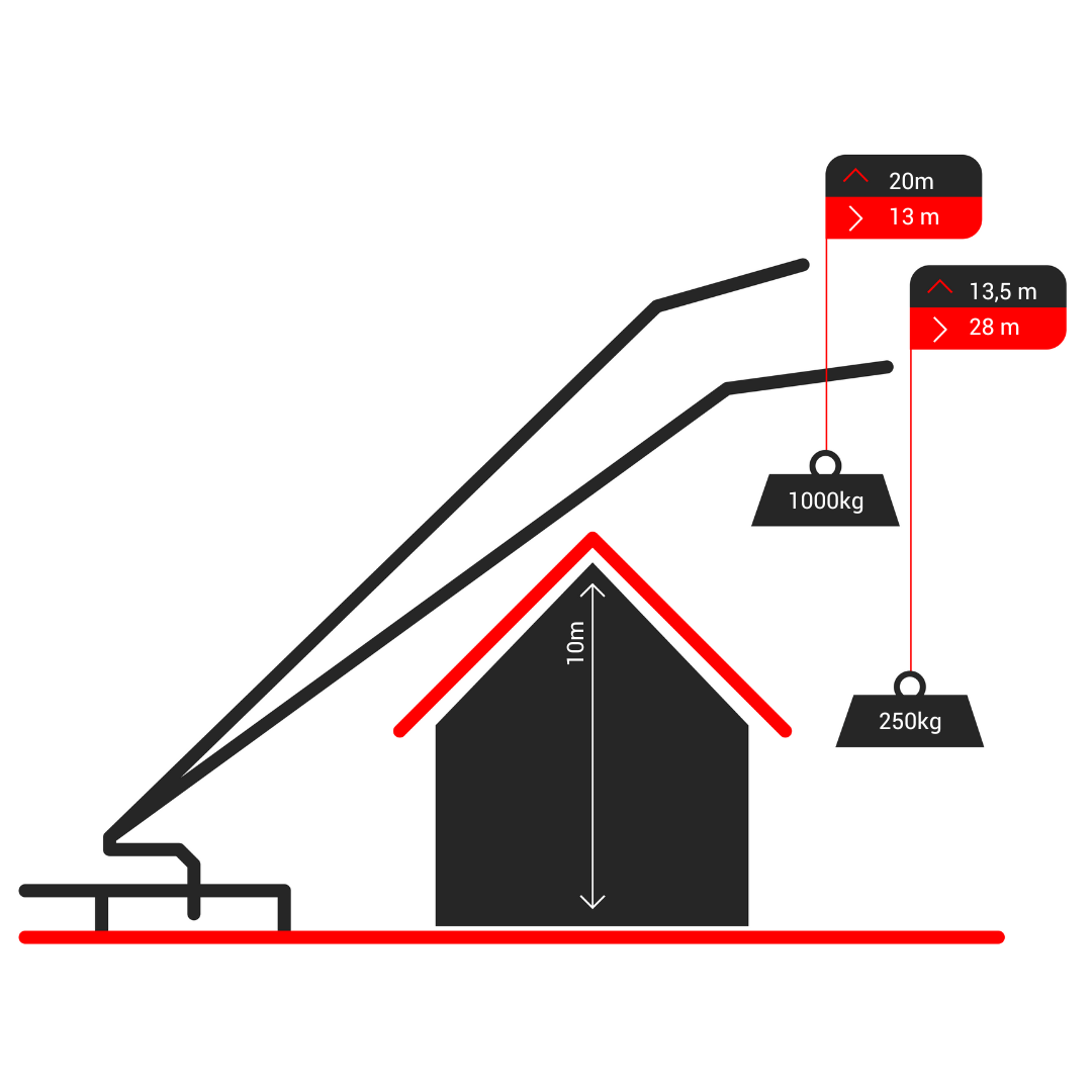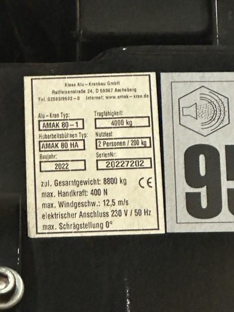 Cette grue de toiture ou de levage, dotée d'un bras articulé entièrement hydraulique et d'une base de stabilisation, a été développée et fabriquée avec une précision experte. Elle est équipée d'un concept d'entraînement PTO qui répond aux normes de sécurité strictes. La AMAK 80 fonctionne également comme une nacelle élévatrice. La plateforme de travail peut être rapidement et facilement montée sans outils. La AMAK 80 est une valeur sûre pour les travaux de levage et de toiture.