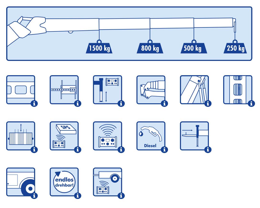 Dit is een telescopische dakdekkerskraan als aanhanger met hoogwerkerfunctie. Deze hijskraan met volhydraulische knikarm en afstempelbasis is ontwikkeld en vervaardigd met vakkundige precisie en heeft een nieuwe krachtige en zuinige Kubota dieselmotor. Deze aluminium dakwerkerskraan is eindeloos draaibaar en voorzien van een radiografische-afstandsbesturing met grote display. Alle kraanfuncties functioneren met last.