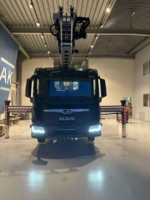 Cette grue sur camion a une hauteur maximale de crochet de 36,5 mètres.